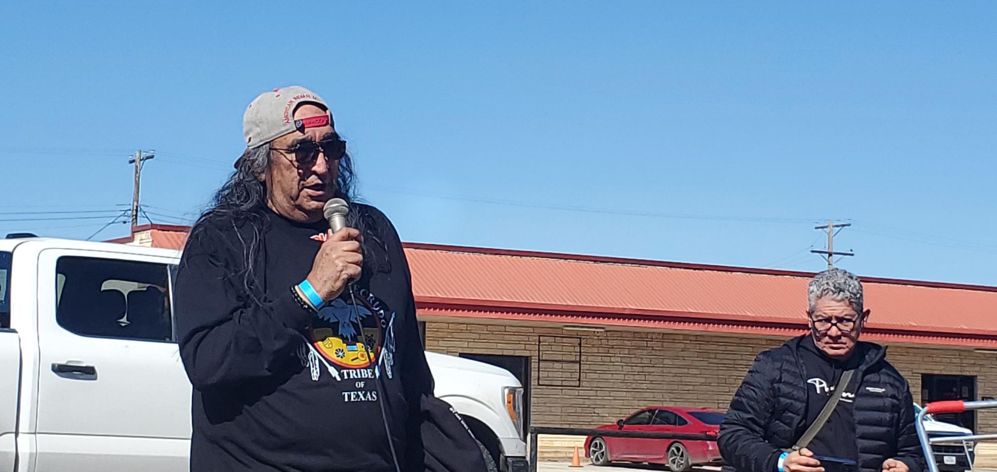 An indigenous leader spoke of land where his people lived for thousands of years and then said, “No one is illegal coming into this land which was stolen.”