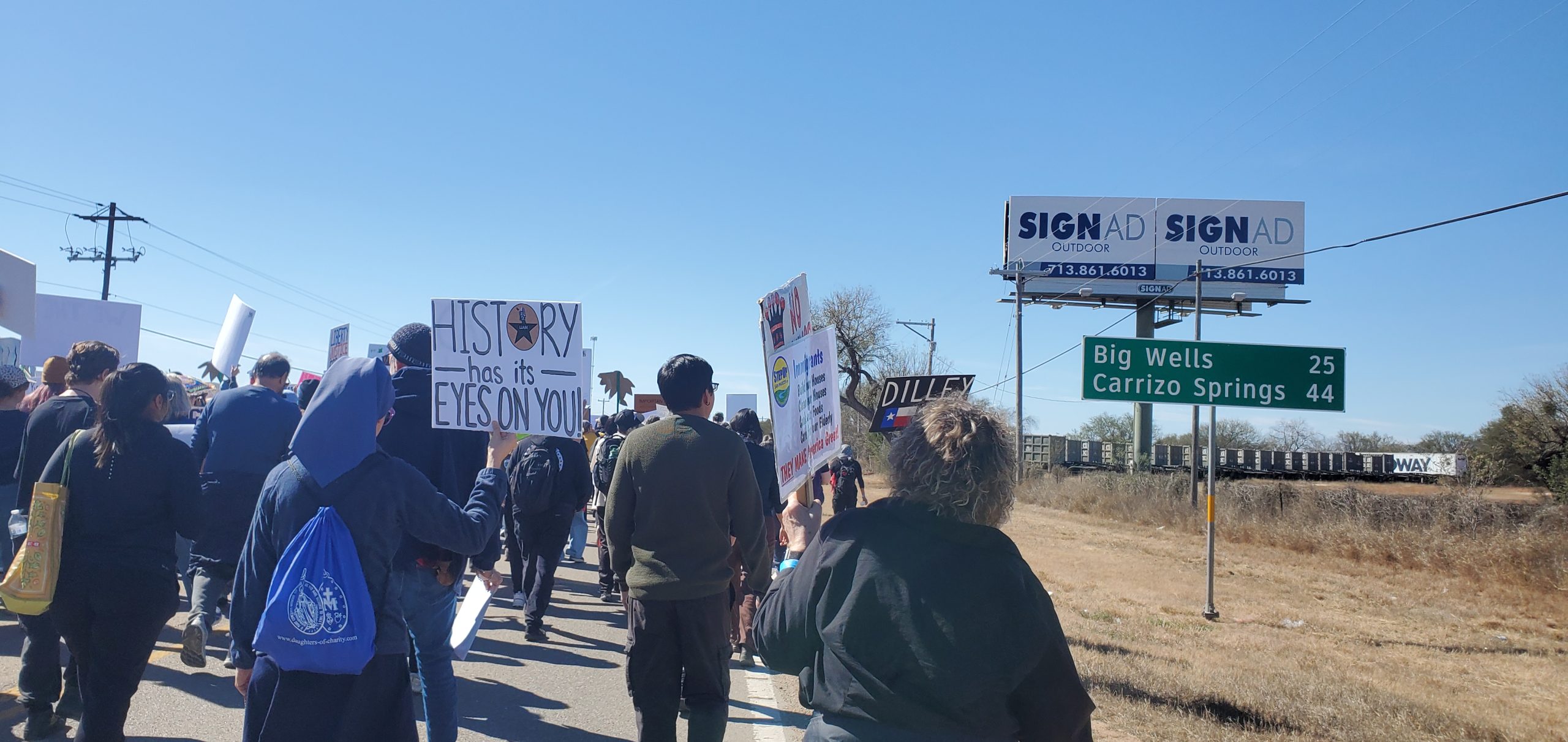 Candy, Ayaan, and the indigenous leader spoke to about 350 of us gathered in a park in Dilley, Texas. January 25, 2026, we were preparing to walk about two miles to the South Texas Family Residential Center, to draw attention to Liam Adrian Conejo Ramos, 5 years old, and his father, Adrian Alexander Conejo Arias, who had been detained the week before by ICE officials in Minnesota and transferred to Texas.