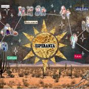 Debajo coloqué fotografías de personas migrando y niños, viendo tristeza y sacrificio por llegar a su destino.